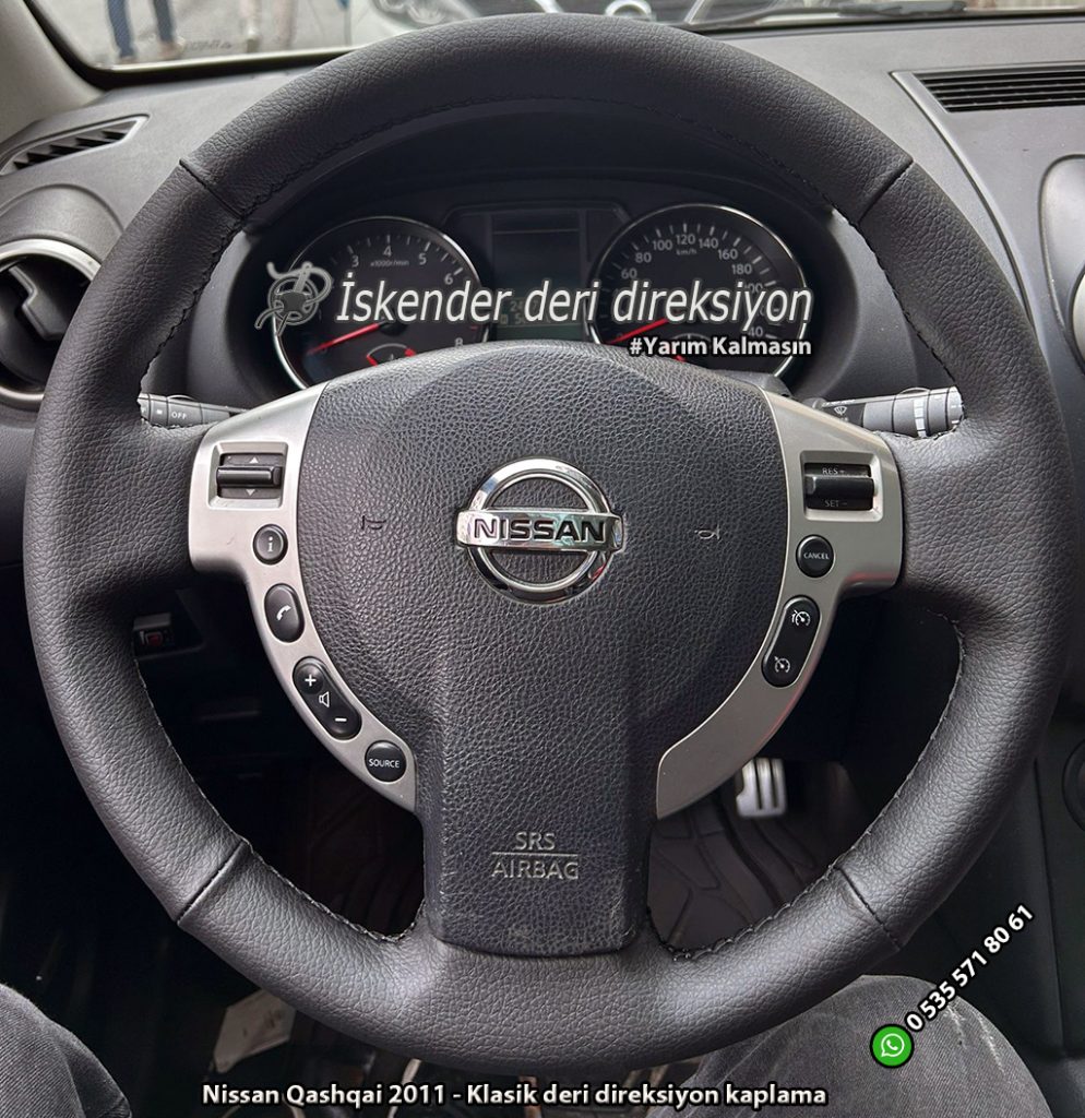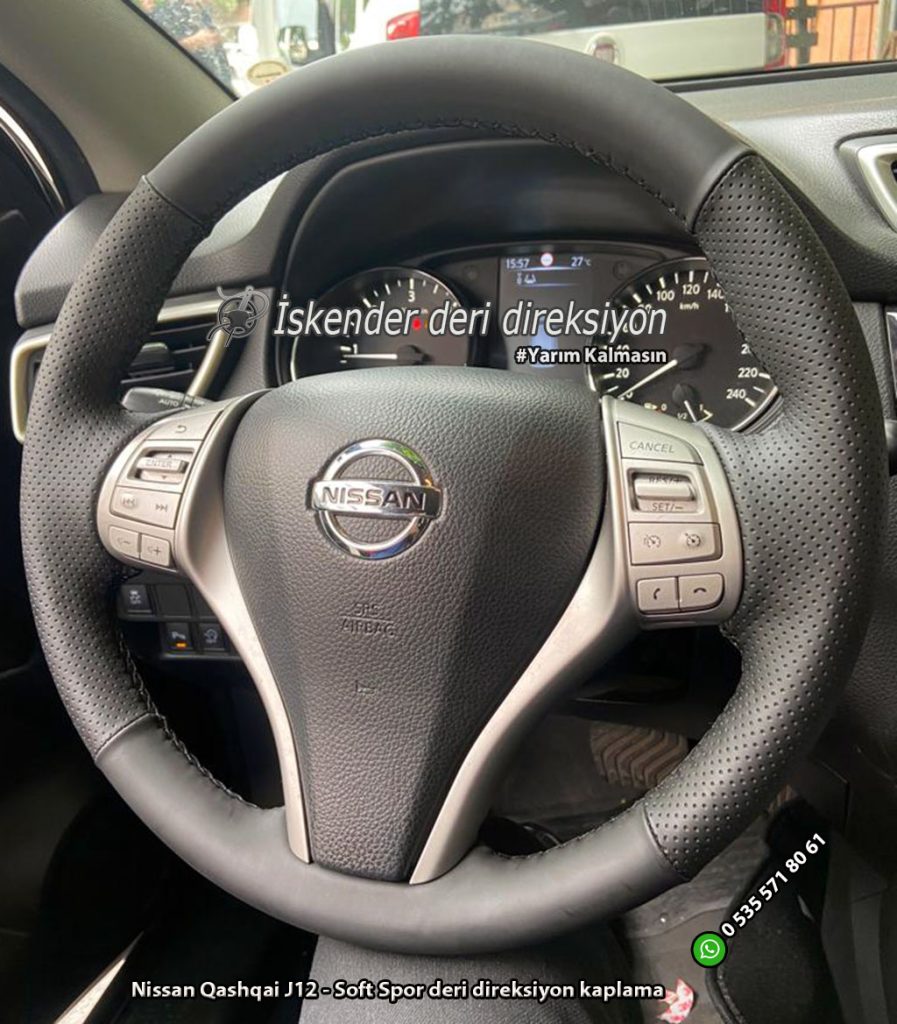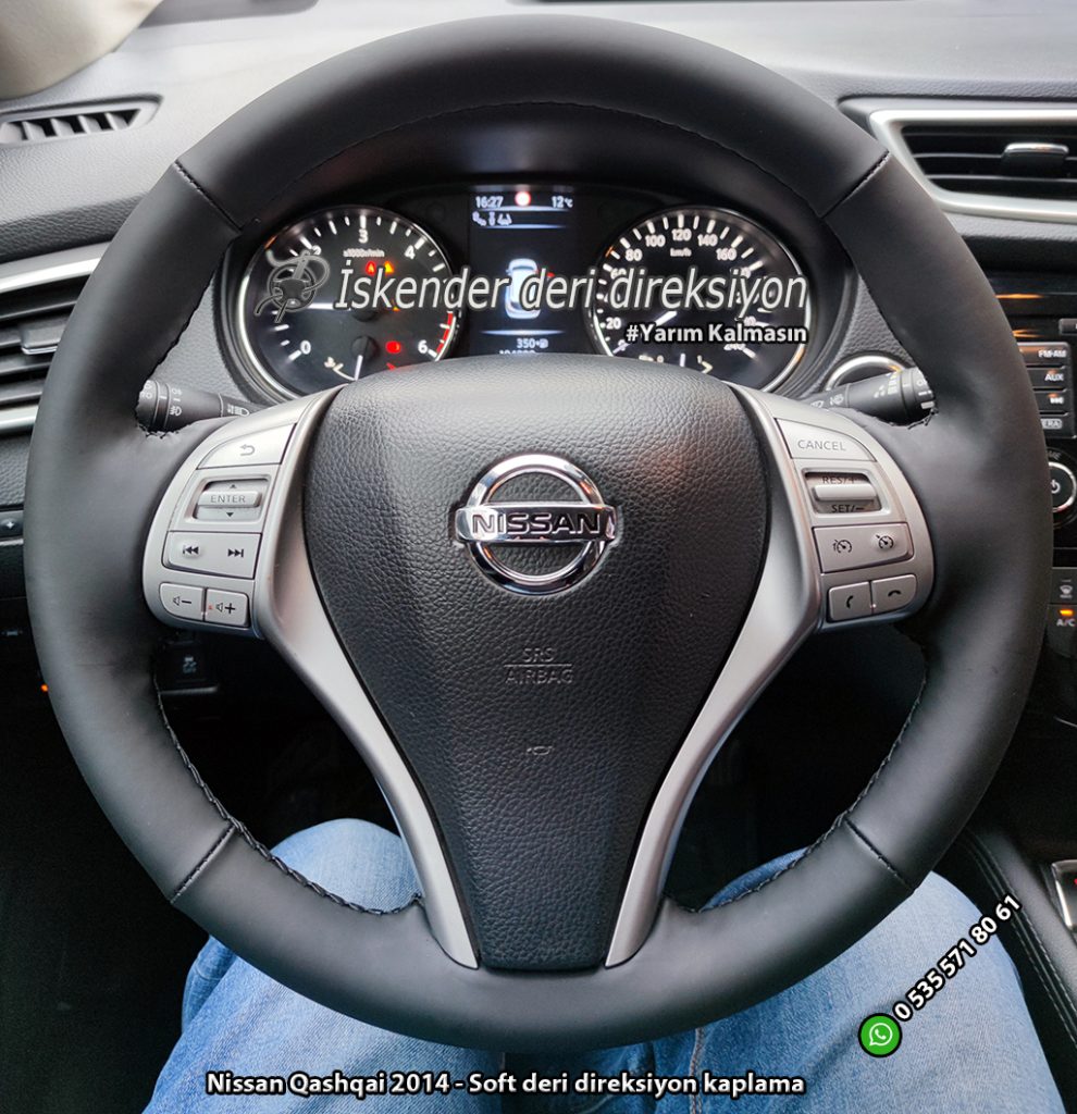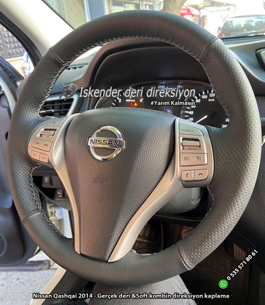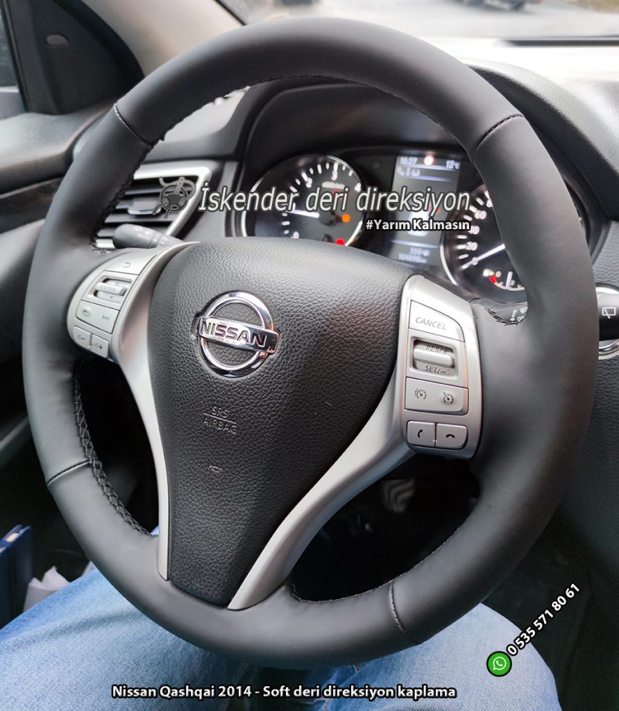 Nissan Qashqai deri direksiyon kaplama 2009-2010-2011-2012-2013-2014-2015-2016-2017-2018-2019-2020-2021 direksiyonlara araca özel kılıflarla kaplıyoruz, orjinal kalıp yapıyoruz.