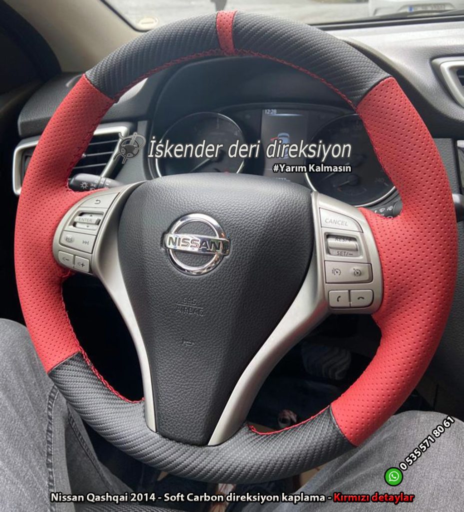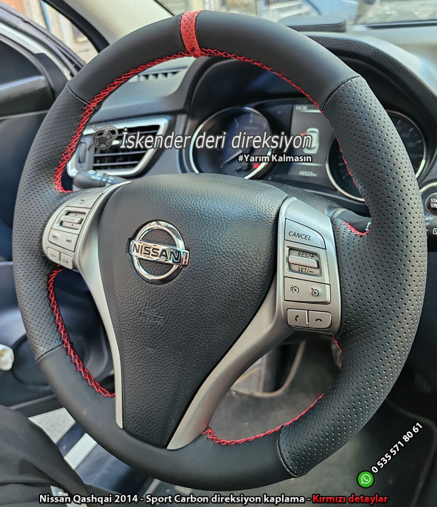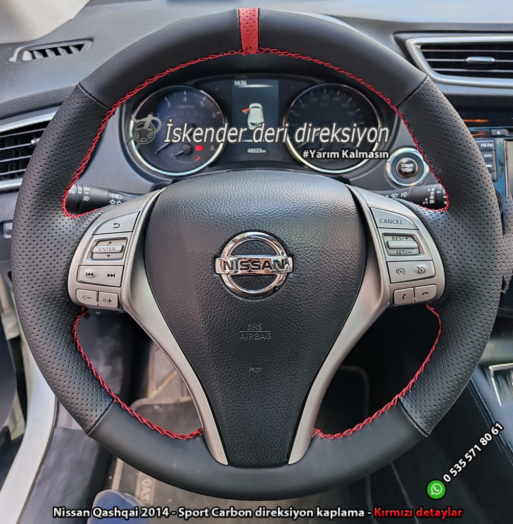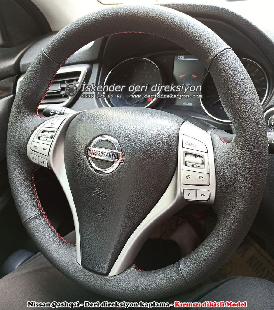Nissan Qashqai deri direksiyon kaplama 2009-2010-2011-2012-2013-2014-2015-2016-2017-2018-2019-2020-2021 direksiyonlara araca özel kılıflarla kaplıyoruz, orjinal kalıp yapıyoruz.
